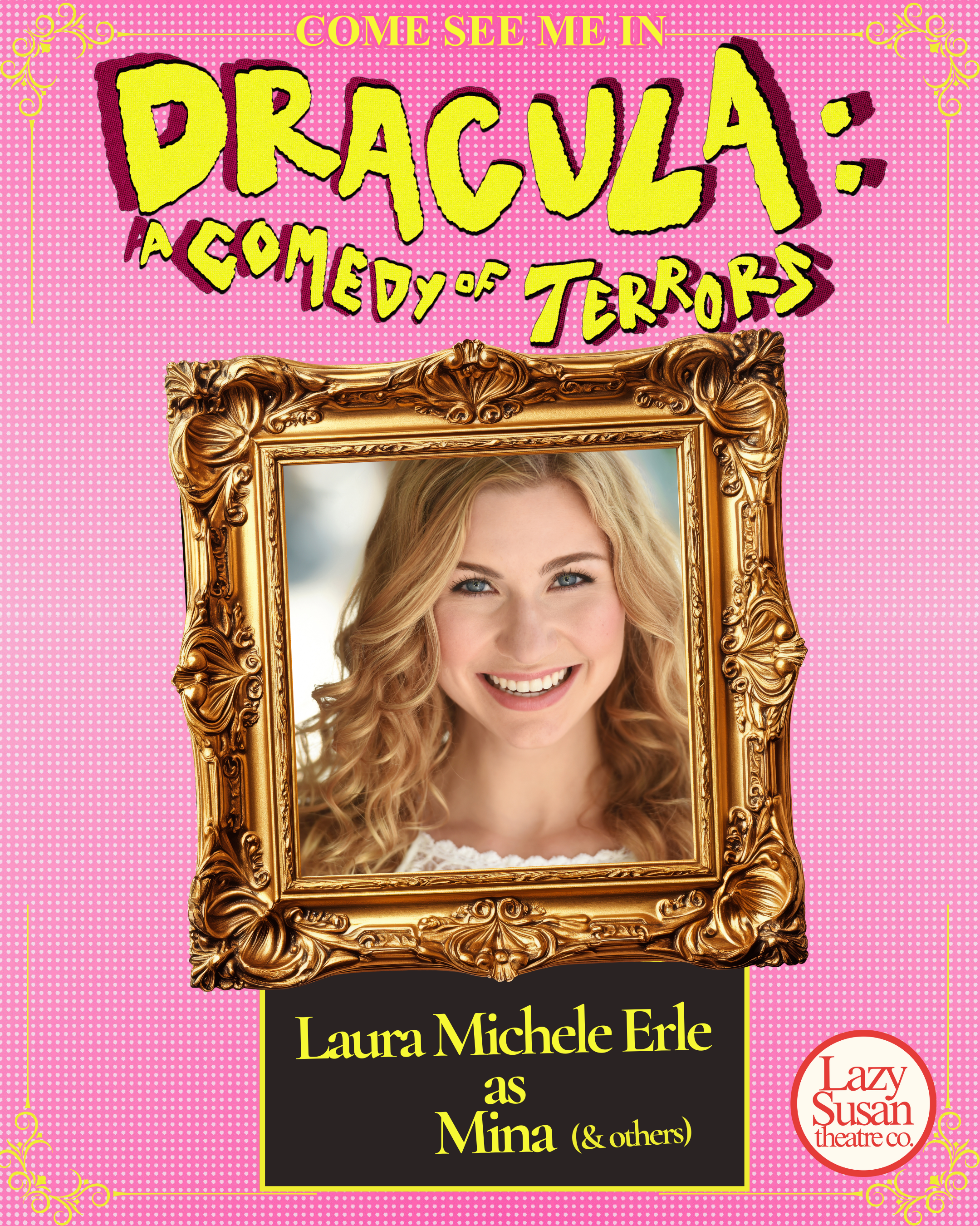 I am having an outrageously fun time playing Mina Westfeldt and Dr. Van Helsing in this sexy, silly, unhinged retelling of Bram Stroker’s Dracula! It is my debut with Lazy Susan Theatre Co. and I truly could not have asked for a better team to work with on this show. Killer reviews are pouring in (read them here!), and we are Jeff Awards Recommended!